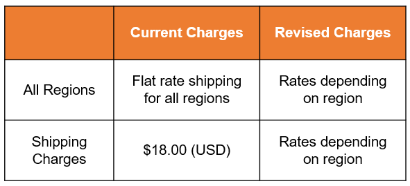 Notice Regarding Revised Shipping Charges