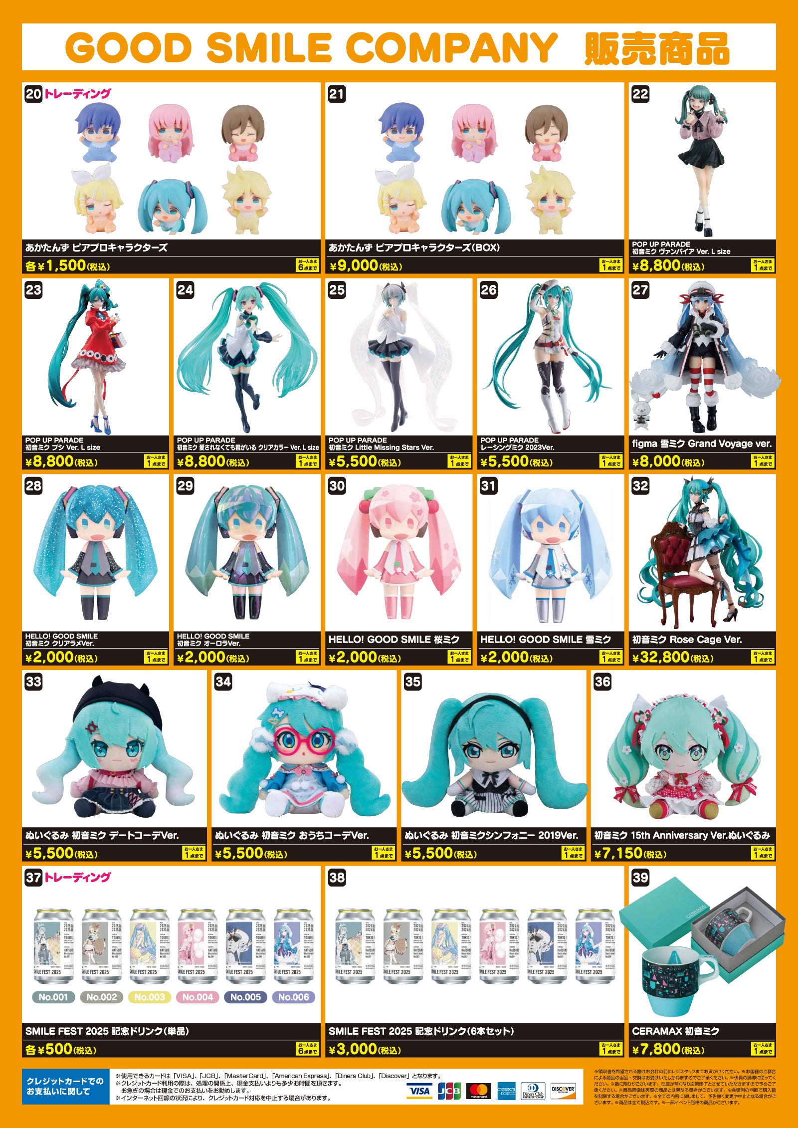 - 『先行販売』以外の商品は、開催日ごとに数量を分けて販売を行いませんので、在庫が無くなり次第販売終了となります。