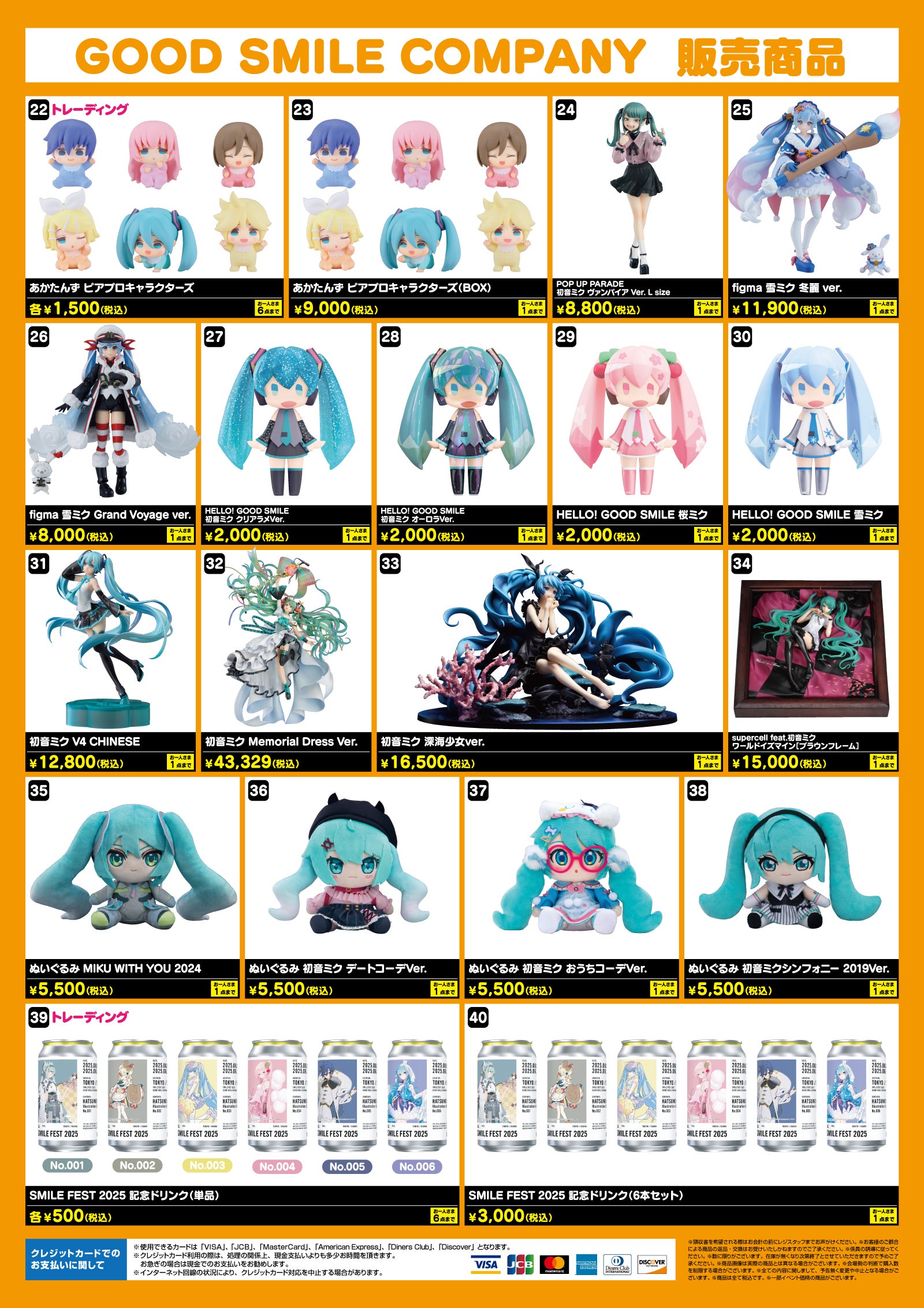 - 『先行販売』以外の商品は、開催日ごとに数量を分けて販売を行いませんので、在庫が無くなり次第販売終了となります。