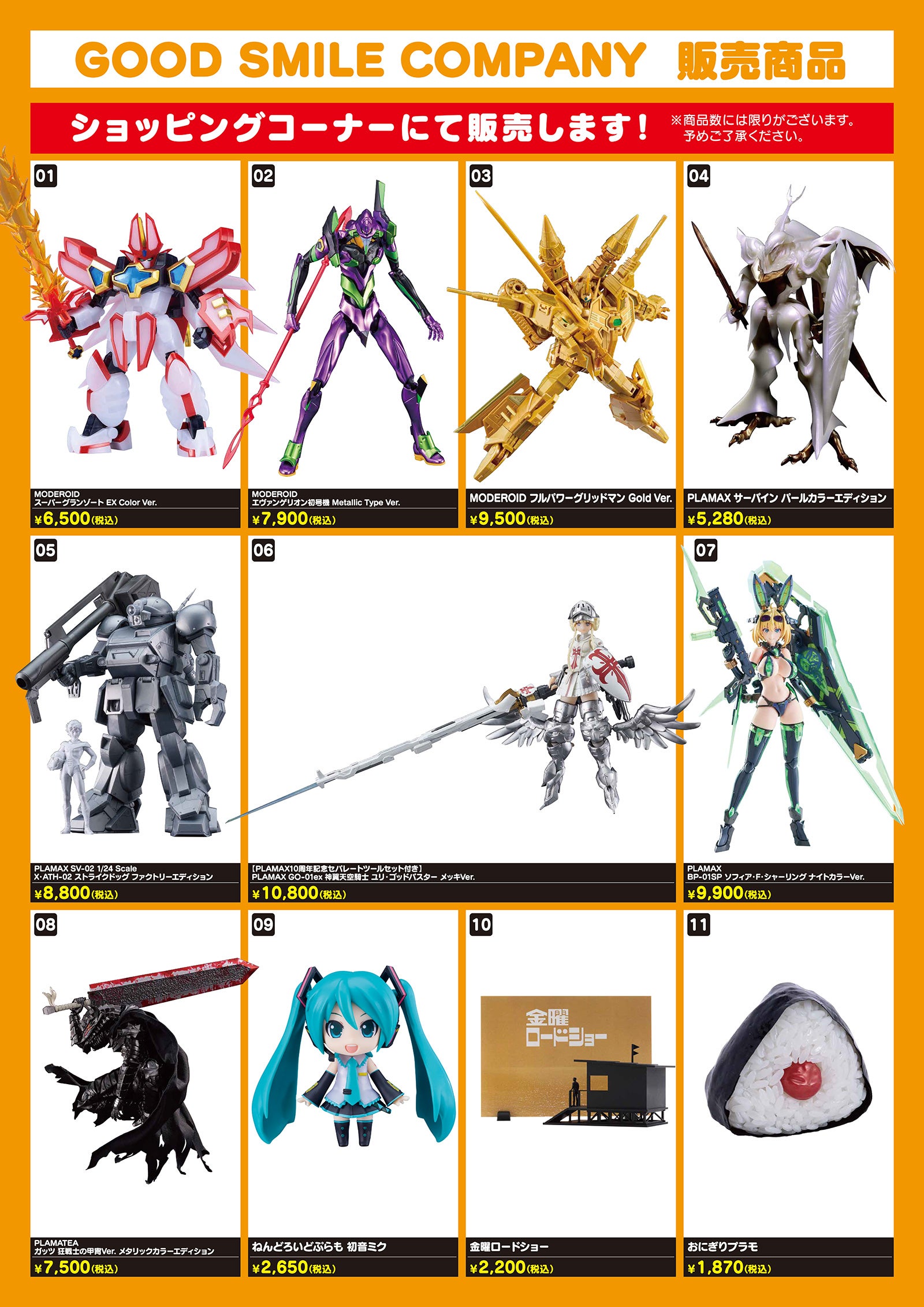ブースではMODEROIDを中心に、PLAMAX、threezero、秋東精工のアイテムを展示します。