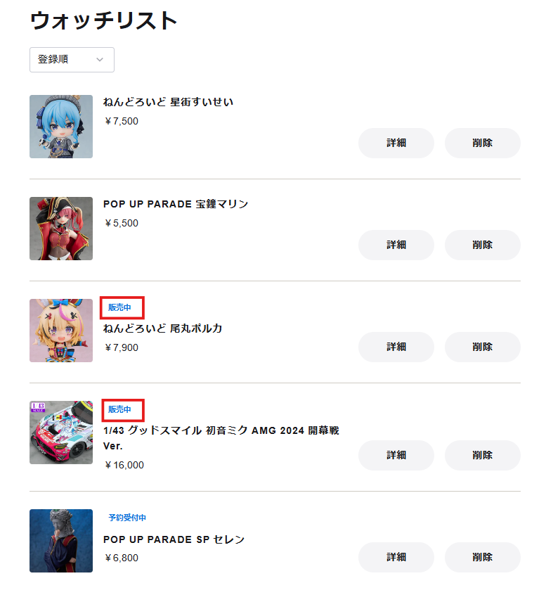 【ウォッチリスト登録商品の確認】