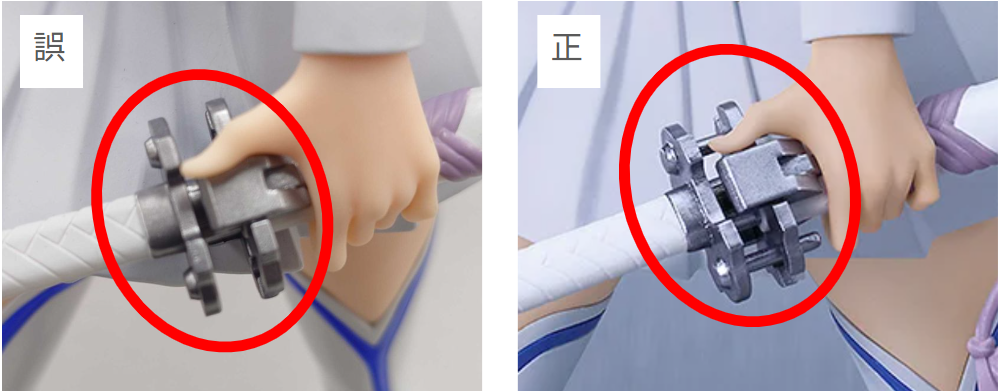 刀パーツの鍔の形状が本来の仕様と異なる。