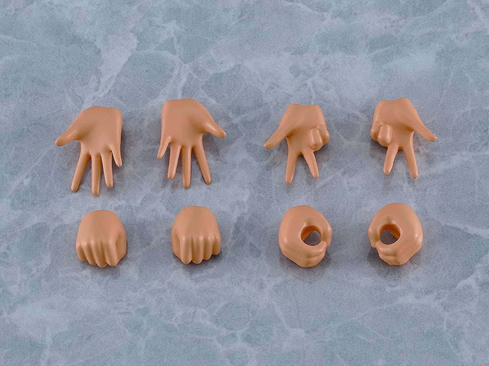 ・手首パーツは「握り手」「平手」「ピース手」「持ち手」の4種が付属。