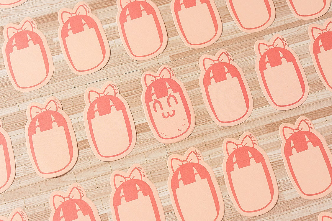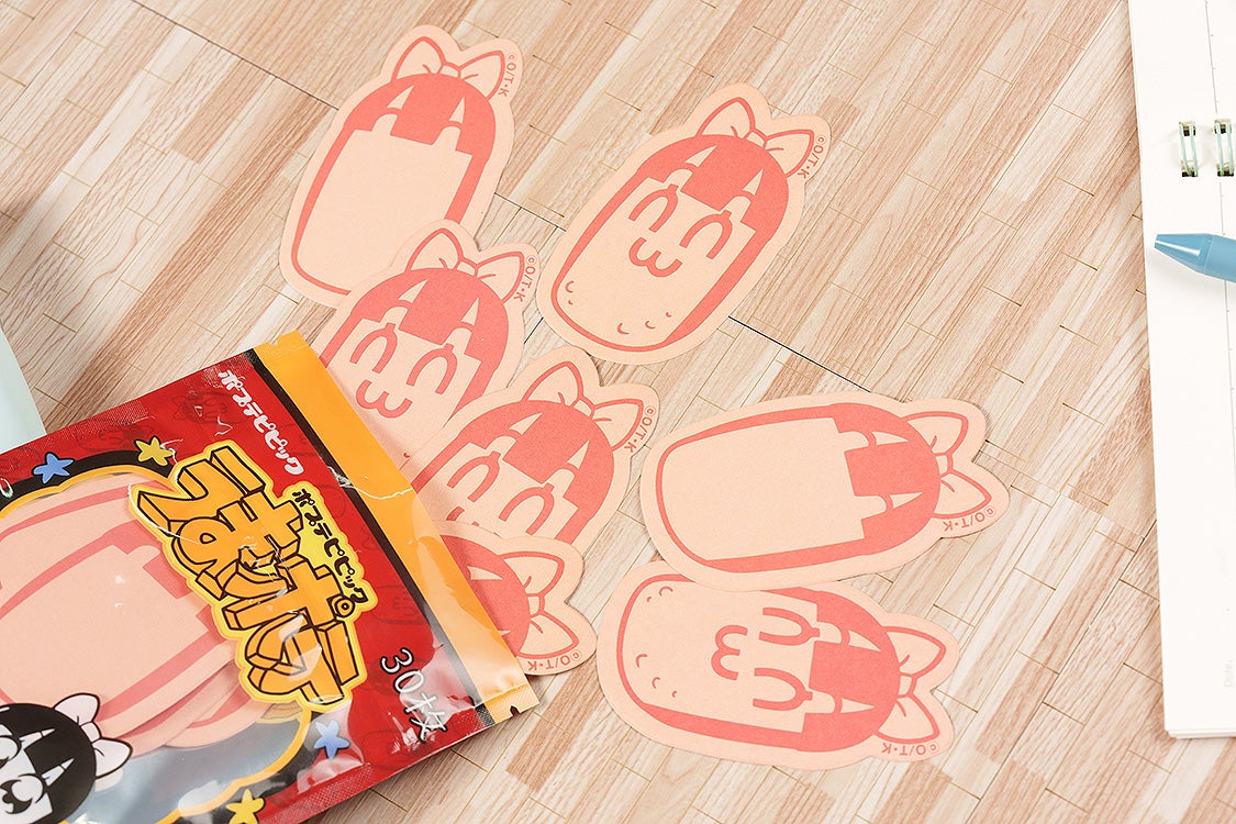 ポテトチップス味のポプ子とスパイシーポテトチップスのピピ美に分かれており、各袋には表情あり・無しの2種類の付箋が入っています。