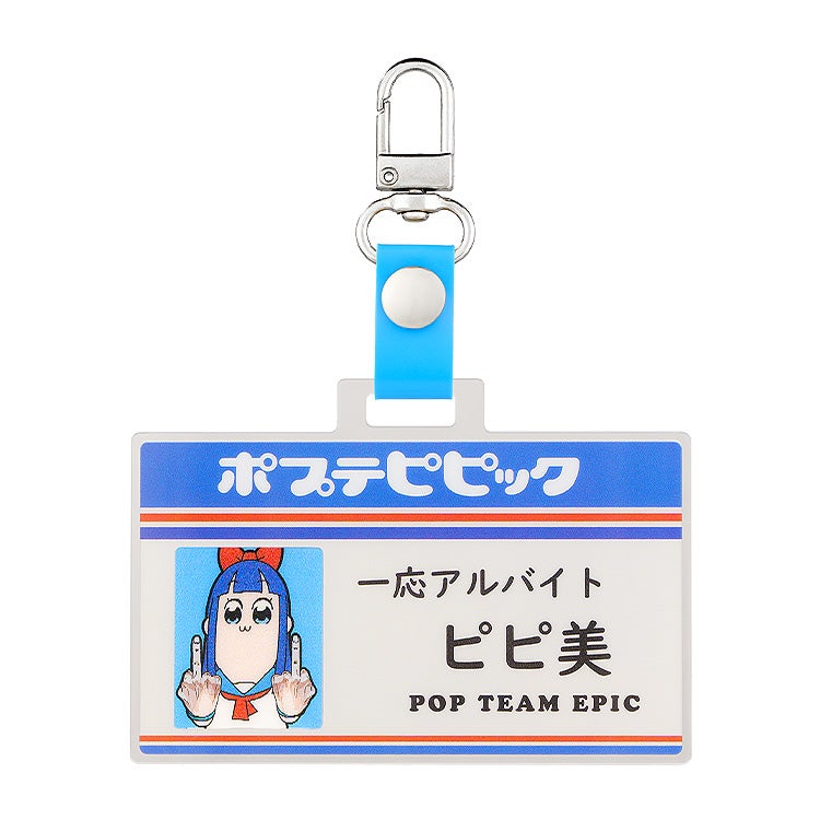 アクリル製コンビニ店員名札。レンチキュラー加工の特殊デザインで、角度によって異なる「おもてなし」の表情が見られます!
