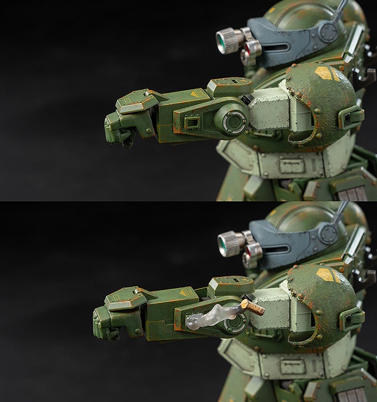 「ロボ道 スコープドッグ」は高さ約14.6cm。ノンスケールながらもミッド級アーマードトルーパーとして、リリース済みのヘビィ級アーマードトルーパー「ロボ道 ラビドリードッグ」(高さ約15.9cm)とのサイズ違いを再現。素材にABS、PVC、POM、そして亜鉛合金ダイキャストを使用したフル可動フィギュアです。亜鉛合金ダイキャストは可動フレームに用いており、これにより全身に合計76ヶ所の可動ポイントを実現。threezeroの得意とするウェザリング表現を含む精密塗装が施されています。
