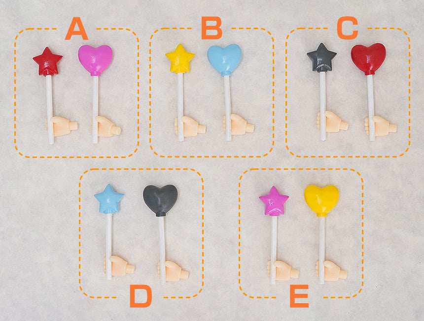 於「GOODSMILE線上商店」預購本商品,將從A~E各套組中隨機贈送一套組「專用手掌+星星&心型氣球」!